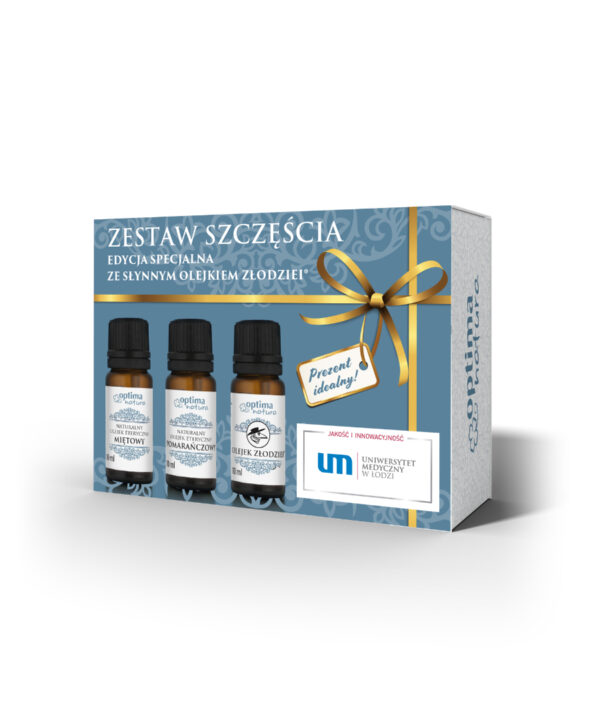 Zestaw szczęścia to trzy rozgrzewające 100% naturalne olejki eteryczne 10 ml Optima Natura w eleganckim pudełeczku, które sprawdzą się idealnie do domowej aromaterapii, a także jako wyjątkowy upominek. Co więcej, kupując 3 olejki w zestawie, płacisz tylko za 2!