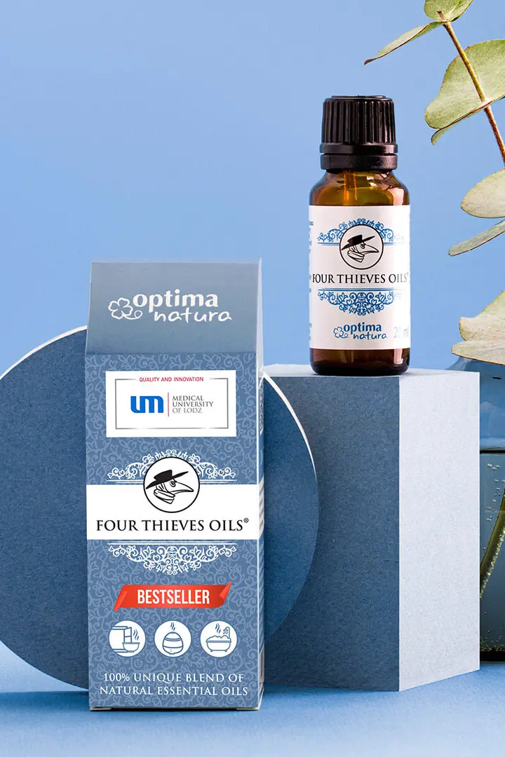 Уникальная смесь 100% натуральных эфирных масел гвоздики, корицы из коры и листьев, эвкалипта, розмарина и лимона. Рецепт Масла Воров был создан по мотивам средневековой легенды и был усовершенствован в Optima Natura. Масло идеально способствует улучшению микроклимата в помещениях, помогает избавиться от патогенов, прекрасно работает в антибактериальной ванне или в ароматерапевтическом массаже.